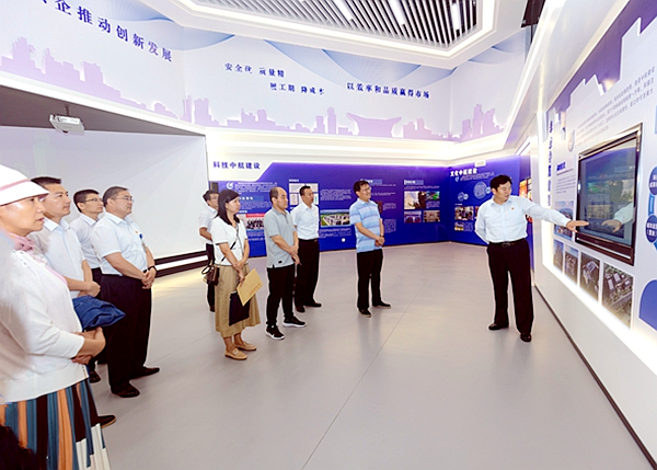 于新华副处长一行首先到集团公司展厅参观,对必赢在线注册发展历程、产业项目概况、未来发展规划以及党建工作进行全面了解。
